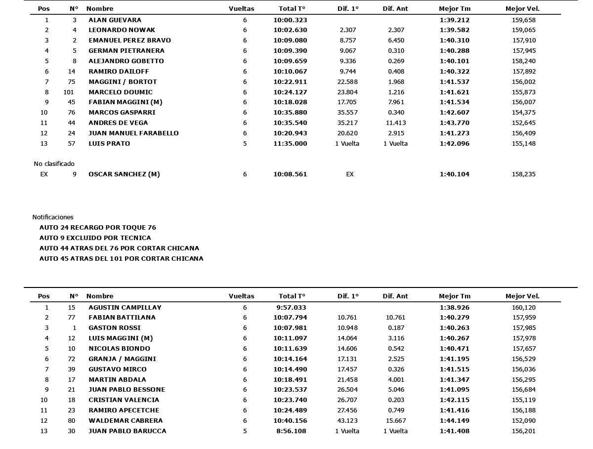 La segunda serie quedo en poder de Agustín Campillay. El de Marcos Paz fue arrollador con el ritmo para ganar por amplio margen sobre sus perseguidores, para lograr la serie más rápida y tener la posición de privilegio en la grilla de la final del domingo. Segundo arribo en este parcial Fabian Batilana de excelente tarea y tercero el Campeón Leonardo Rossi.